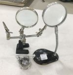 Three Vintage Magnify Glasses, two jewelry magnify glasses and vintage jewelers eyepiece magnify. Three Vintage Magnify Glasses, two jewelry magnify glasses and vintage jewelers eyepiece magnify.