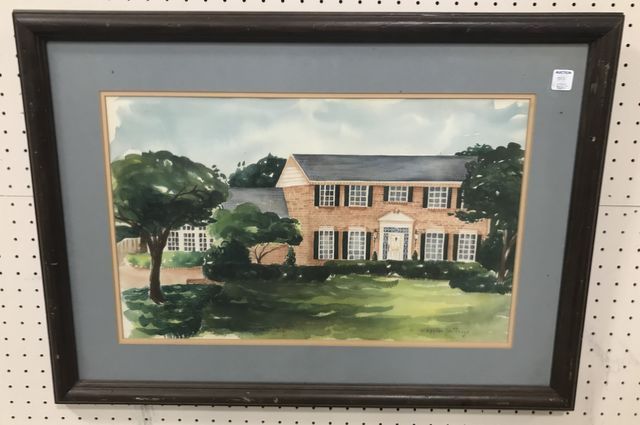 Watercolor of Home by Cappe Jeffreys, watercolor on paper, matted, glassed, frame is 22"h., 30"w. Watercolor of Home by Cappe Jeffreys, watercolor on paper, matted, glassed, frame is 22"h., 30"w.