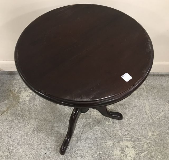Vintage Cherry Round Top Pedestal Table, has has finish wear on top, 26"h., 20"dia. Vintage Cherry Round Top Pedestal Table, has has finish wear on top, 26"h., 20"dia.
