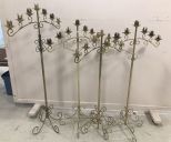 Four Brass Color Iron Candle Stands, adjustable height, 7 candle holder slots. Four Brass Color Iron Candle Stands, adjustable height, 7 candle holder slots.