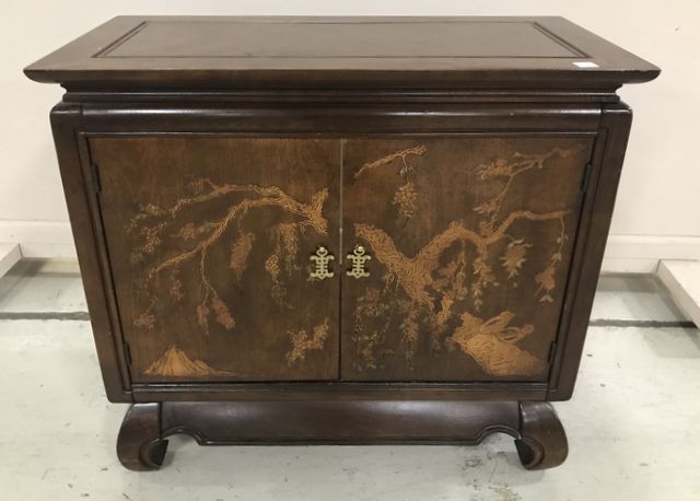 Oriental Style Double Door Cabinet, Ming style, open bottom, 29"h., 31"w., 16"d. Oriental Style Double Door Cabinet, Ming style, open bottom, 29"h., 31"w., 16"d.