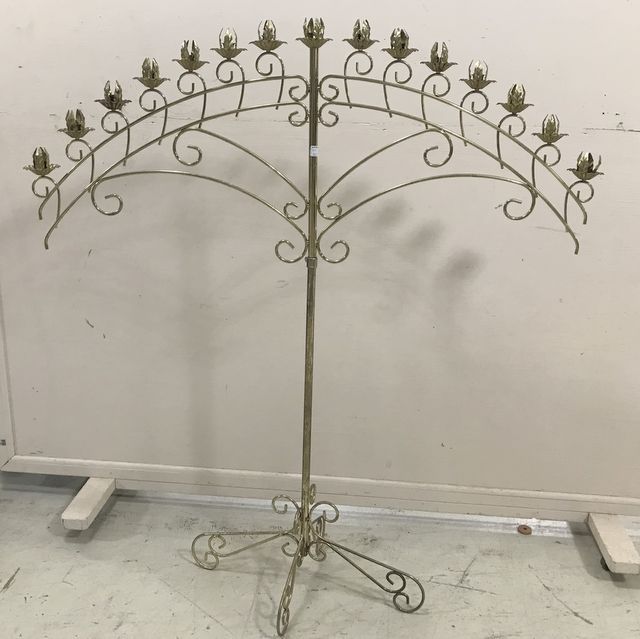 Large Brass Color Candle Stand, adjustable height, 15 candle holder slots. Large Brass Color Candle Stand, adjustable height, 15 candle holder slots.
