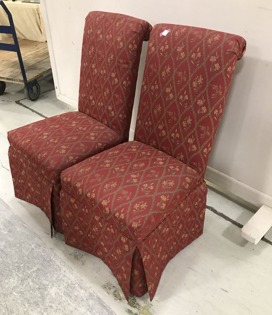 Pair of Skirted Parson's Chairs, red upholstery, good condition, 38"h. Pair of Skirted Parson's Chairs, red upholstery, good condition, 38"h.