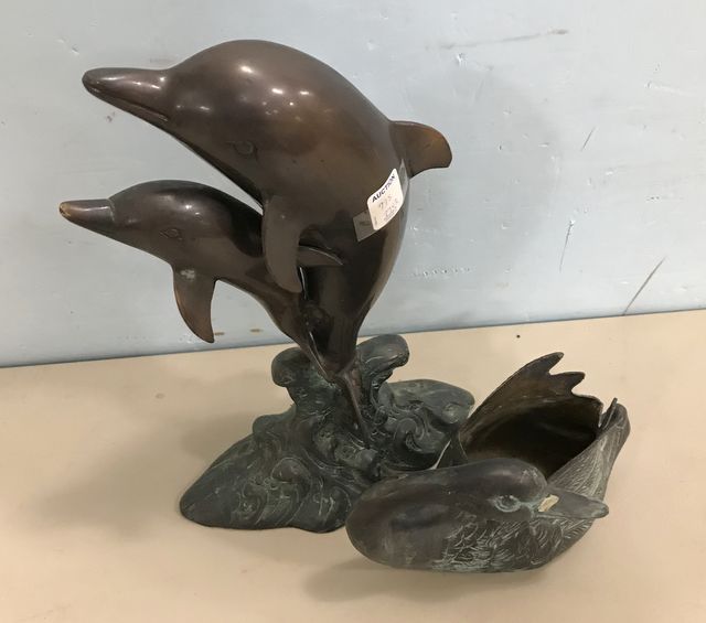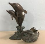 Bronzed Color Metal Dolphin Statue 14"h. and Metal Swan Planter. Bronzed Color Metal Dolphin Statue 14"h. and Metal Swan Planter.