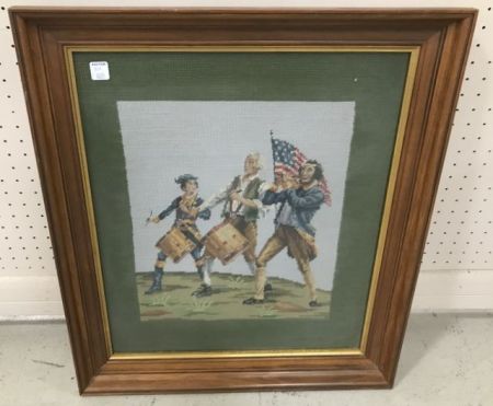 Needlepoint American Revolutionary War Drummers, glassed, frame is 27"h., 23"w. Needlepoint American Revolutionary War Drummers, glassed, frame is 27"h., 23"w.