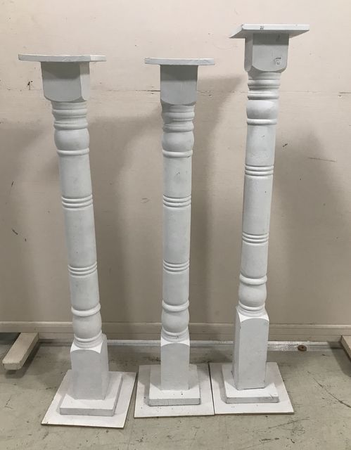 Three Wood Painted White Decor Columns, tallest is 5'3. Three Wood Painted White Decor Columns, tallest is 5'3.