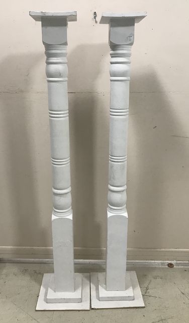 Two Painted White Wood Decor Columns, 5'11. Two Painted White Wood Decor Columns, 5'11.