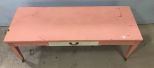 Pink Painted Rectangle Coffee Table, single white painted drawer, on wheels, has scratches, 17"h., 48"w., 17"d. Pink Painted Rectangle Coffee Table, single white painted drawer, on wheels, has scratches, 17"h., 48"w., 17"d.