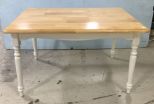 Modern Pine and Painted White Kitchen Table , pine top with painted white base, legs are bolt on, minor wear, 29"h., 48"w., 30"d. Modern Pine and Painted White Kitchen Table , pine top with painted white base, legs are bolt on, minor wear, 29"h., 48"w., 30"d.