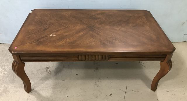 Modern Wood Finish Coffee Table, wood finish wear, rectangle coffee table, 19"h., 48"w., 19"d. Modern Wood Finish Coffee Table, wood finish wear, rectangle coffee table, 19"h., 48"w., 19"d.