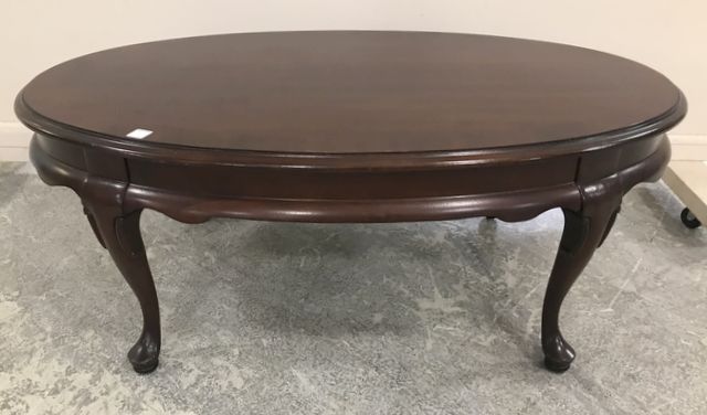 Gordon's Fine Furniture Oval Cherry Coffee Table, Tennessee, modern reproduction, cherry, 16"h., 42"w., 26"d. Gordon's Fine Furniture Oval Cherry Coffee Table, Tennessee, modern reproduction, cherry, 16"h., 42"w., 26"d.