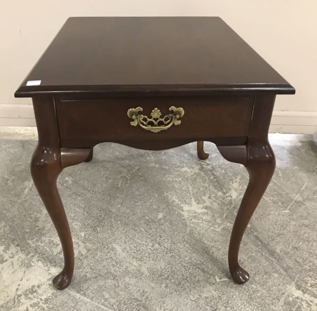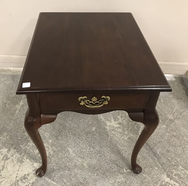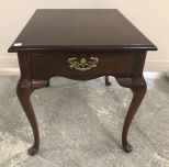 Bassett Cherry Lamp Table, modern, single drawer, Queen Anne style, 22"h., 21"w., 27"d. Bassett Cherry Lamp Table, modern, single drawer, Queen Anne style, 22"h., 21"w., 27"d.