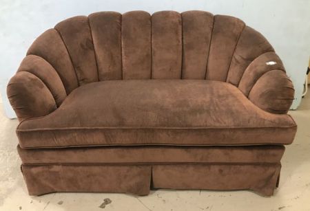 The Charles Stewart Company Upholstered Settee, Hickory, N.C. single cushion, tufted back, needs cleaning, 31"h., 60"w. The Charles Stewart Company Upholstered Settee, Hickory, N.C. single cushion, tufted back, needs cleaning, 31"h., 60"w.