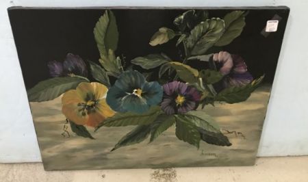Flower Painting on Canvas, signed Leighanne 1995, 18"h., 24"w. Flower Painting on Canvas, signed Leighanne 1995, 18"h., 24"w.