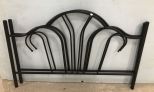 Two black painted iron headboards, missing finials, no rails. Two black painted iron headboards, missing finials, no rails.