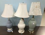 1145 Three Gray, White, and Blue Glass Table Lamps