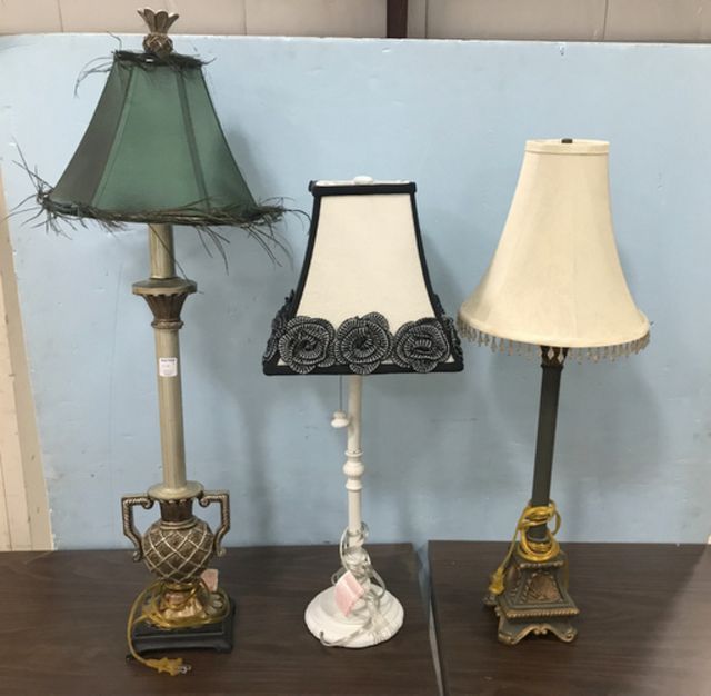 White painted lamp, gray age crackle design lamp, urn style poll lamp 35"h. White painted lamp, gray age crackle design lamp, urn style poll lamp 35"h.