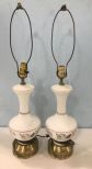Pair of Frosted Table lamps, frosted white glass vase style lamps with brass base, 31"h. Pair of Frosted Table lamps, frosted white glass vase style lamps with brass base, 31"h.
