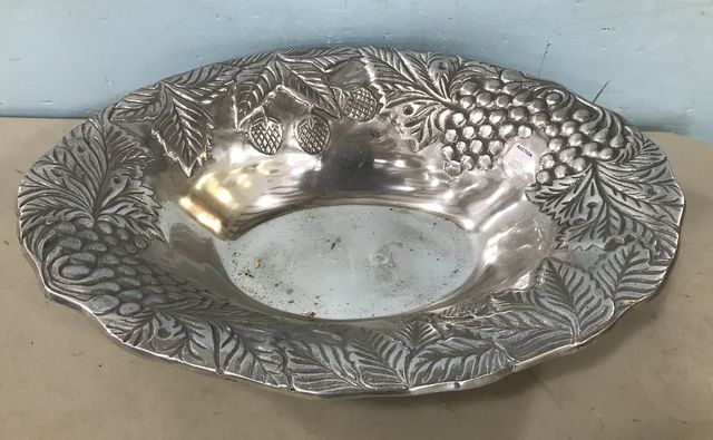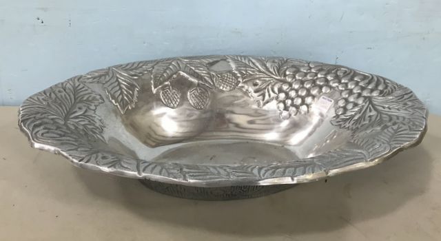 Grapevine Style Metal Center Piece Bowl, silver color, made in India, 5"h., 23"w. Grapevine Style Metal Center Piece Bowl, silver color, made in India, 5"h., 23"w.