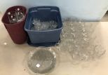 Large Group of Punch Cups and Clear Glass Mugs, two clear glass plates. Large Group of Punch Cups and Clear Glass Mugs, two clear glass plates.