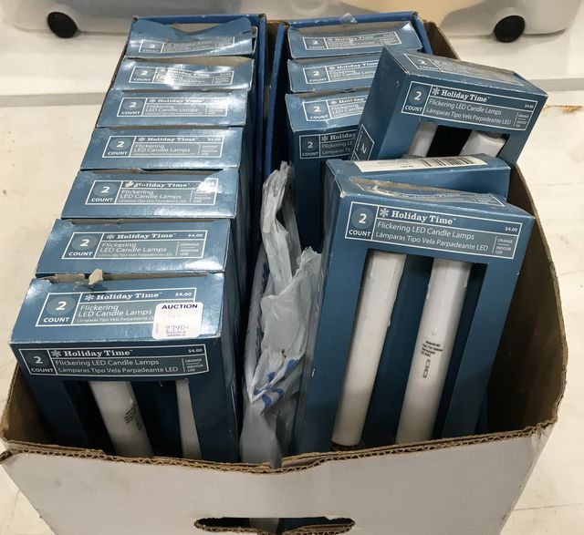Box of Holiday Time Flickering LED Candle Lamps, box of two, 13 boxes. Box of Holiday Time Flickering LED Candle Lamps, box of two, 13 boxes.
