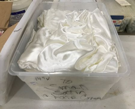 Box full of Small satin chair covers. Box full of Small satin chair covers.