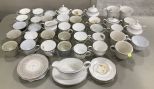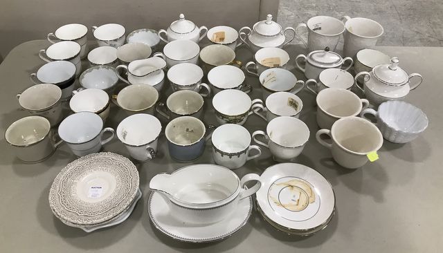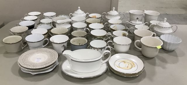 Multiple pattern china cups and saucers, plates. Wedgwood, and Lenox. Multiple pattern china cups and saucers, plates. Wedgwood, and Lenox.