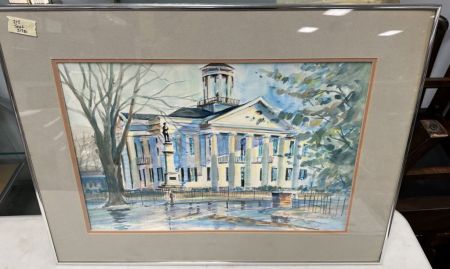 Gary Walters "Raymond Court House" Watercolor, Jackson, MS artist, matted, framed, 21"h., 28"w, Location Left Office 1 Gary Walters "Raymond Court House" Watercolor, Jackson, MS artist, matted, framed, 21"h., 28"w, Location Left Office 1