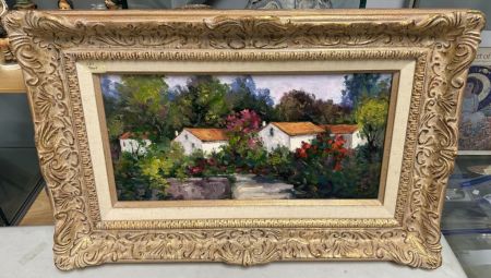 Yvette Sturgis Framed Painting, on board, frame is 18"h., 27"w, piece is 10"h., 20"w, born in Panama, Jackson MS Artist, Location Left Wall Yvette Sturgis Framed Painting, on board, frame is 18"h., 27"w, piece is 10"h., 20"w, born in Panama, Jackson MS Artist, Location Left Wall