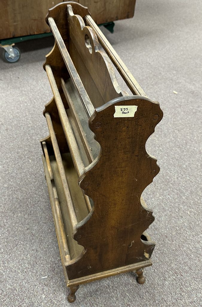 Vintage Canterbury Magazine Stand, 29"h., 22"w. Location Row 4 Vintage Canterbury Magazine Stand, 29"h., 22"w. Location Row 4