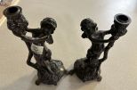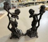 256 Pair of Bronze Cherub Candlesticks