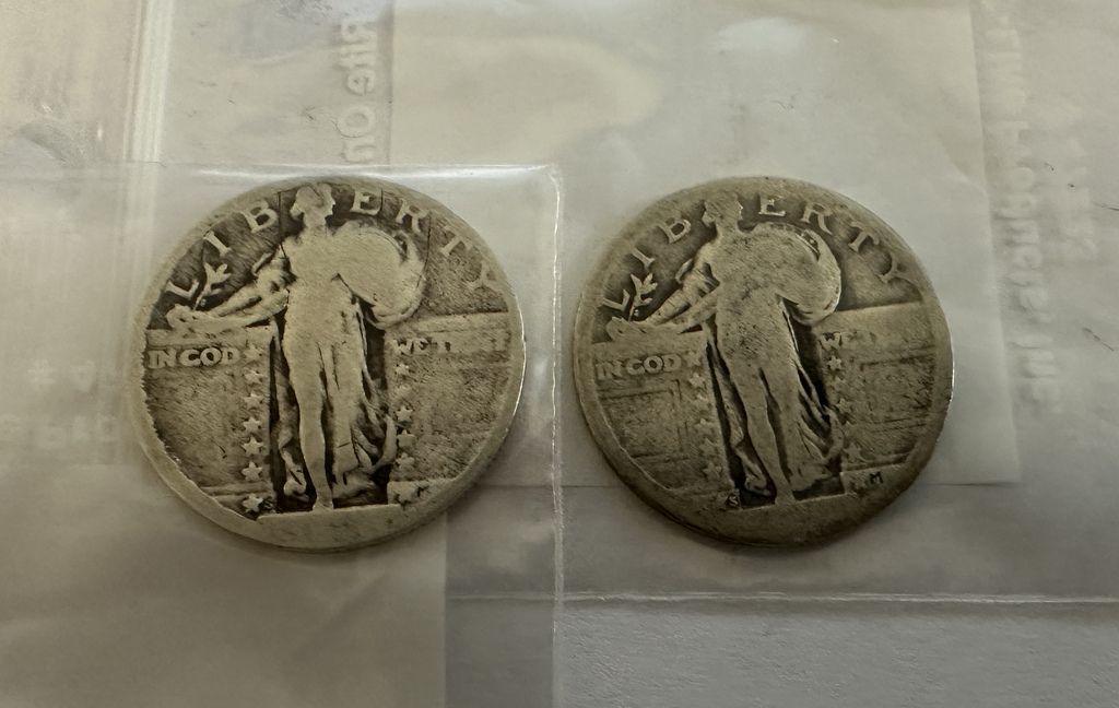 Two No Dates Standing Liberty Quarter Dollars, S with stars and stars below eagle on reverse side, Location Safe Two No Dates Standing Liberty Quarter Dollars, S with stars and stars below eagle on reverse side, Location Safe