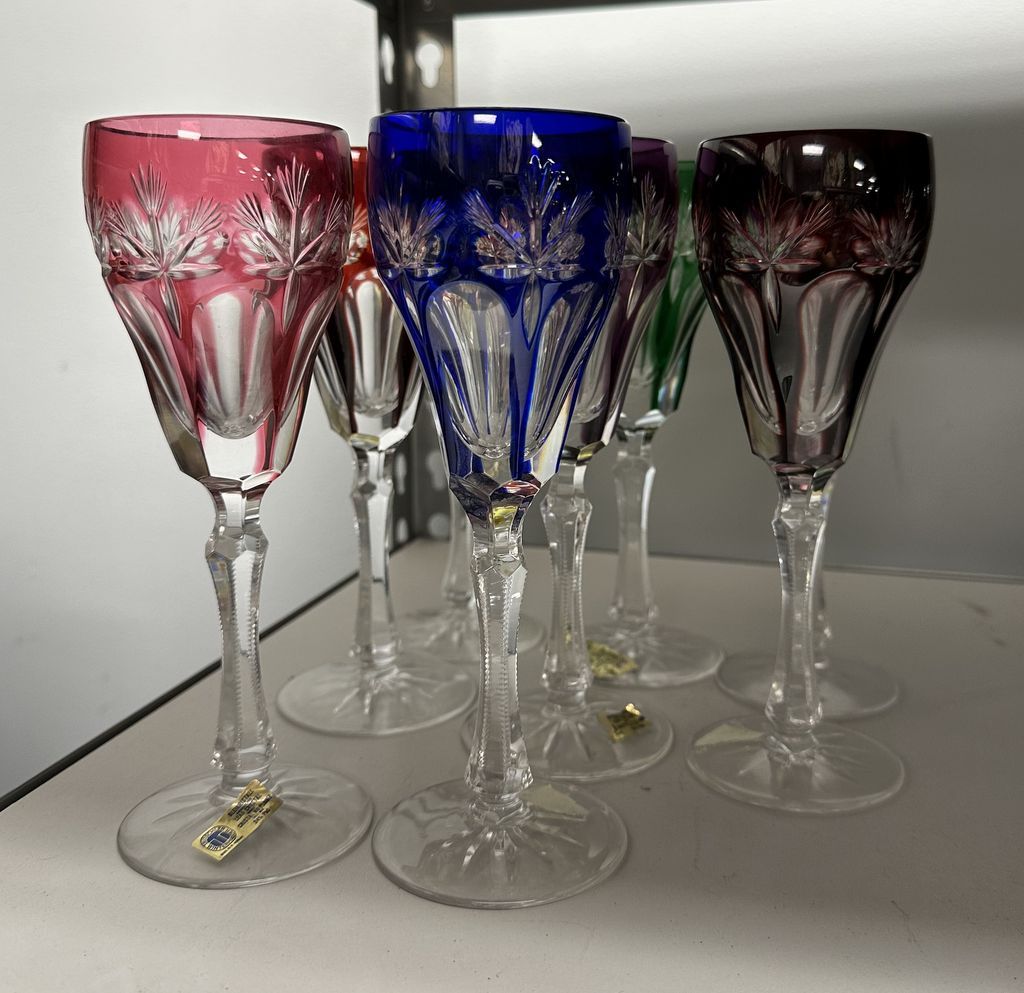 Bleikristrall Crystal Multi Color Wine Stems, 8"h, Location Back Metal Shelves Bleikristrall Crystal Multi Color Wine Stems, 8"h, Location Back Metal Shelves