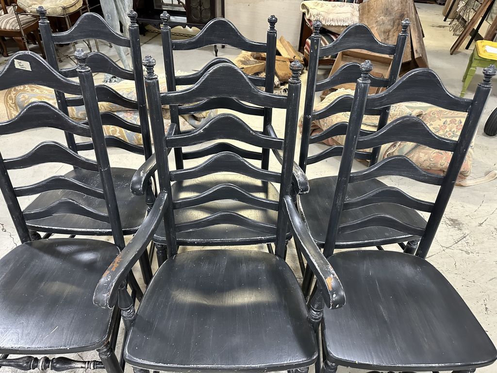 6 Traditional Style Painted Dining Chairs, oak, two arms, four sides. Location Row 2 6 Traditional Style Painted Dining Chairs, oak, two arms, four sides. Location Row 2