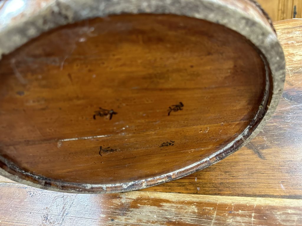 Antique Hand Painted Chinese Rice Barrel, signed, aged wear, 12"h. 10"w. Antique Hand Painted Chinese Rice Barrel, signed, aged wear, 12"h. 10"w.