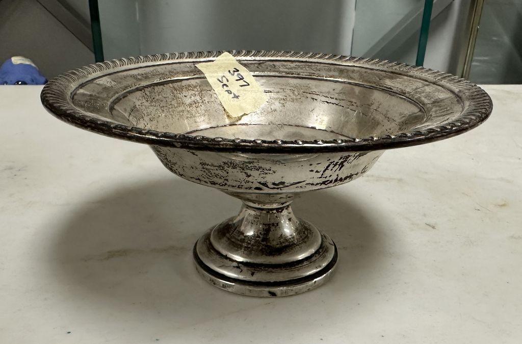 Sterling Weighted Compote, 3 1/2"h., 7"dia, Location Front Left Shelve Sterling Weighted Compote, 3 1/2"h., 7"dia, Location Front Left Shelve