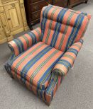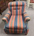 Striped Upholstered Arm Chair, needs cleaning, Location Row 2 Striped Upholstered Arm Chair, needs cleaning, Location Row 2