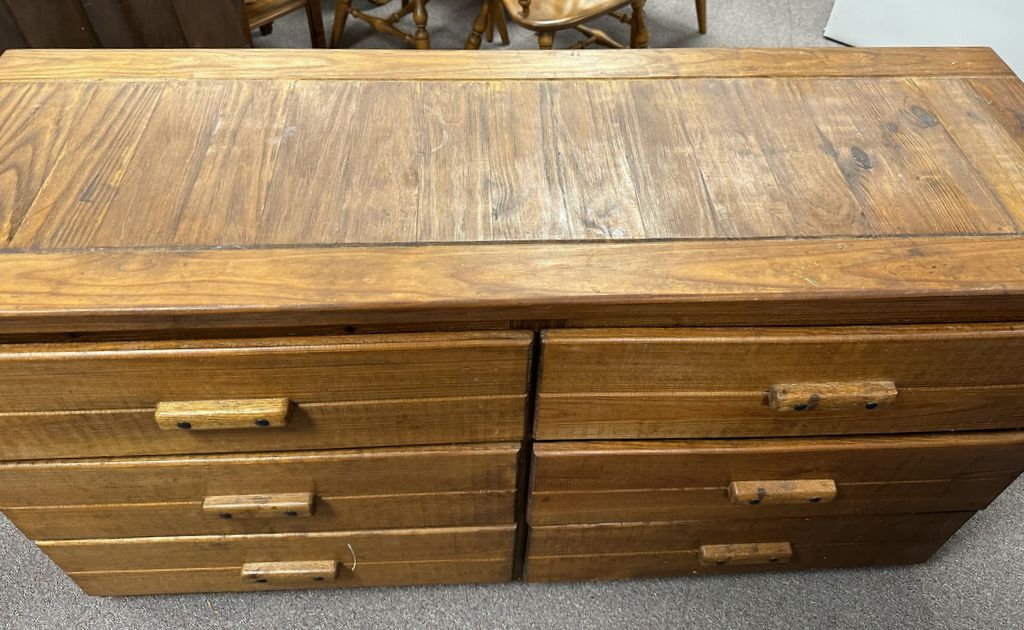 Late 20th Century Oak Double Dresser, light wear, 31"h., 59"w. 20"d. Location Row 5 Late 20th Century Oak Double Dresser, light wear, 31"h., 59"w. 20"d. Location Row 5