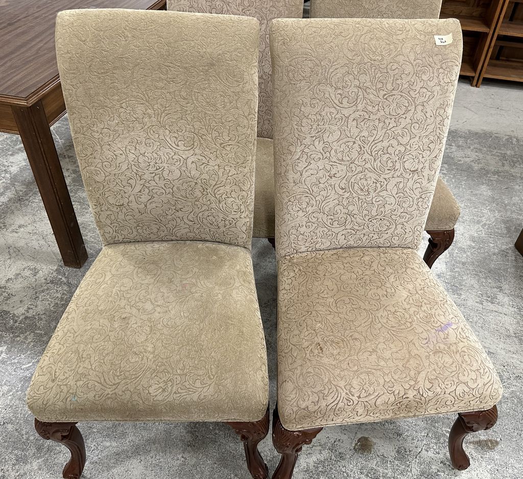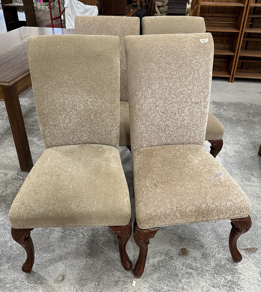 Bombay Four Tan Upholstered French Style Dining Chairs, one seat has blue mark, Location Right Office 2 Bombay Four Tan Upholstered French Style Dining Chairs, one seat has blue mark, Location Right Office 2