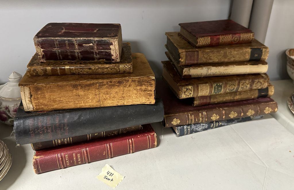 Collection of Antique Leather Bound Books, Location Left Office 1 Collection of Antique Leather Bound Books, Location Left Office 1