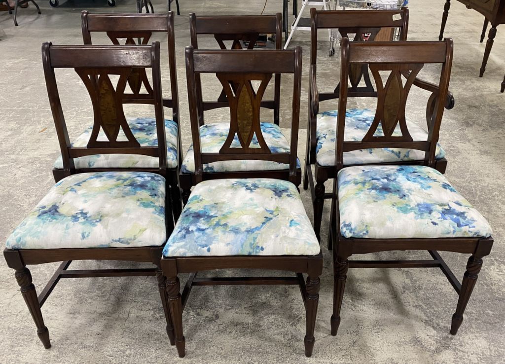 461 6 Vintage Jacobean Style Mahogany Dining Chairs