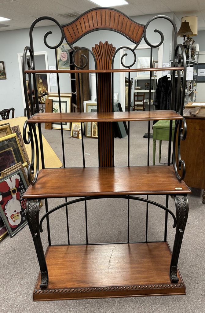 Modern Metal and Wood Bakers/Plant Rack, 81"h., 44"w. Location Row 4 Modern Metal and Wood Bakers/Plant Rack, 81"h., 44"w. Location Row 4