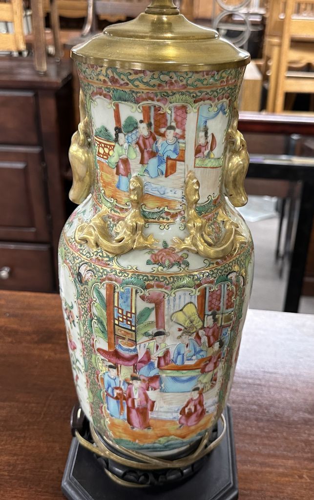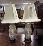505 Pair of Hand Painted Chinese Porcelain Vase Lamp