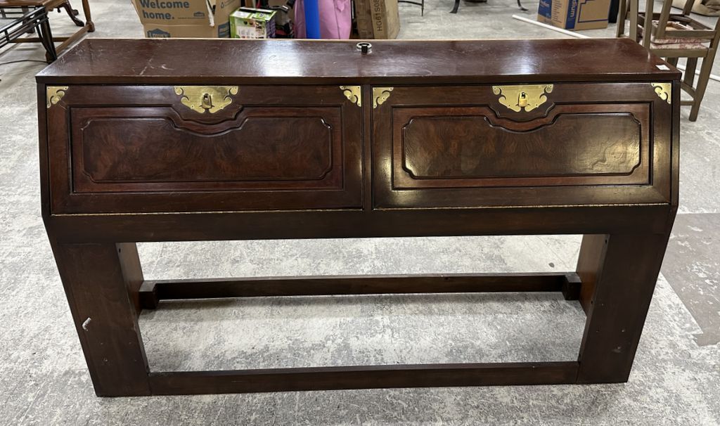 Bernhardt Queen Storage Headboard, brass accents, two door storage. matching lot 529, 530, 532. Location Right Wall Bernhardt Queen Storage Headboard, brass accents, two door storage. matching lot 529, 530, 532. Location Right Wall