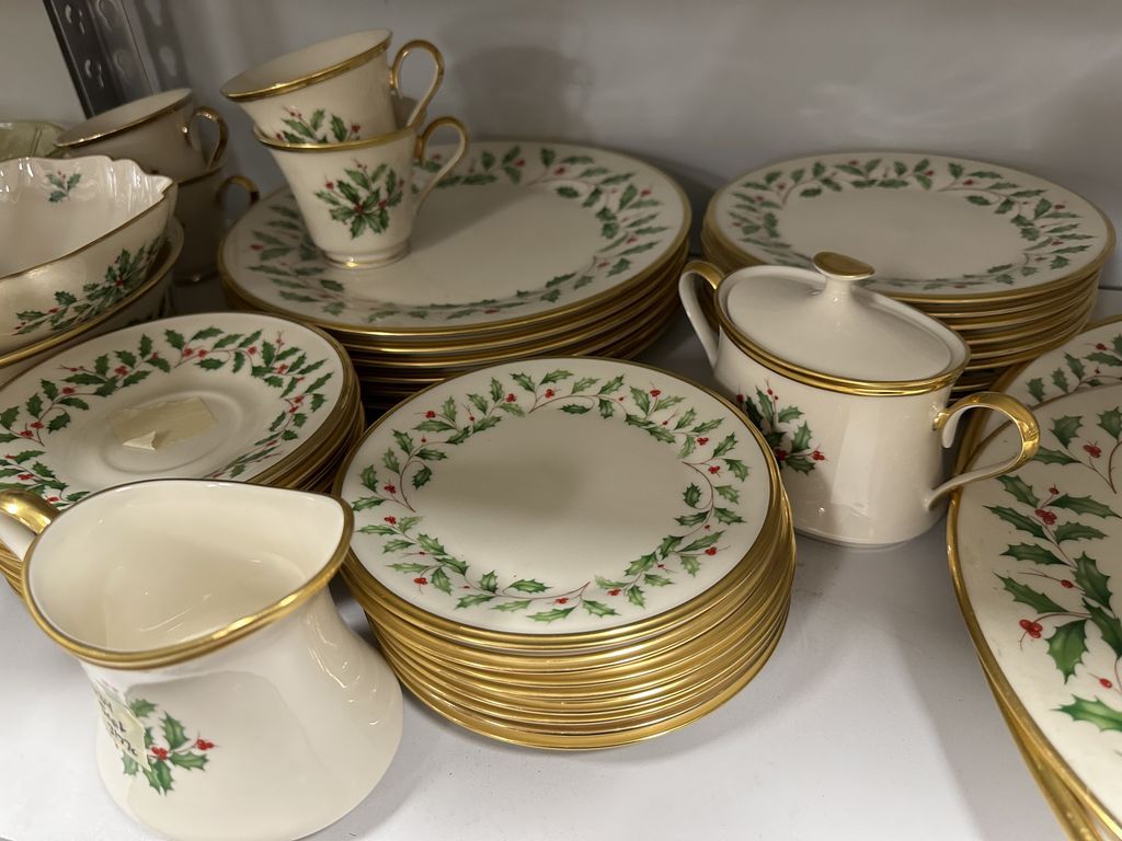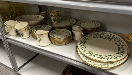Lenox "Holiday" Porcelain China Set, Location Back Metal Shelves Lenox "Holiday" Porcelain China Set, Location Back Metal Shelves