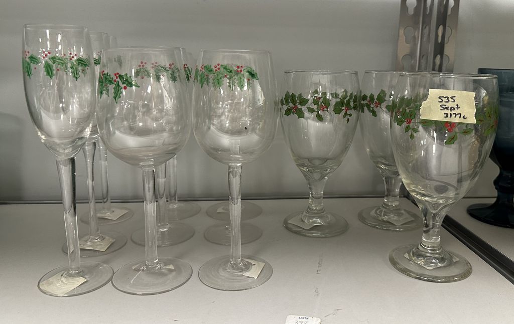 Group of Lenox "Holiday" Wine Stemware, Location Back Metal Shelves Group of Lenox "Holiday" Wine Stemware, Location Back Metal Shelves