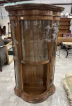 Modern Curved Glass Display Cabinet, glass shelves, missing bottom glass in door, 70"h., 38"w. Location Right Office 2 Modern Curved Glass Display Cabinet, glass shelves, missing bottom glass in door, 70"h., 38"w. Location Right Office 2
