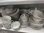 Set of Royal Swirl Fine China Set, made in Japan, Location Back Metal Shelves Set of Royal Swirl Fine China Set, made in Japan, Location Back Metal Shelves