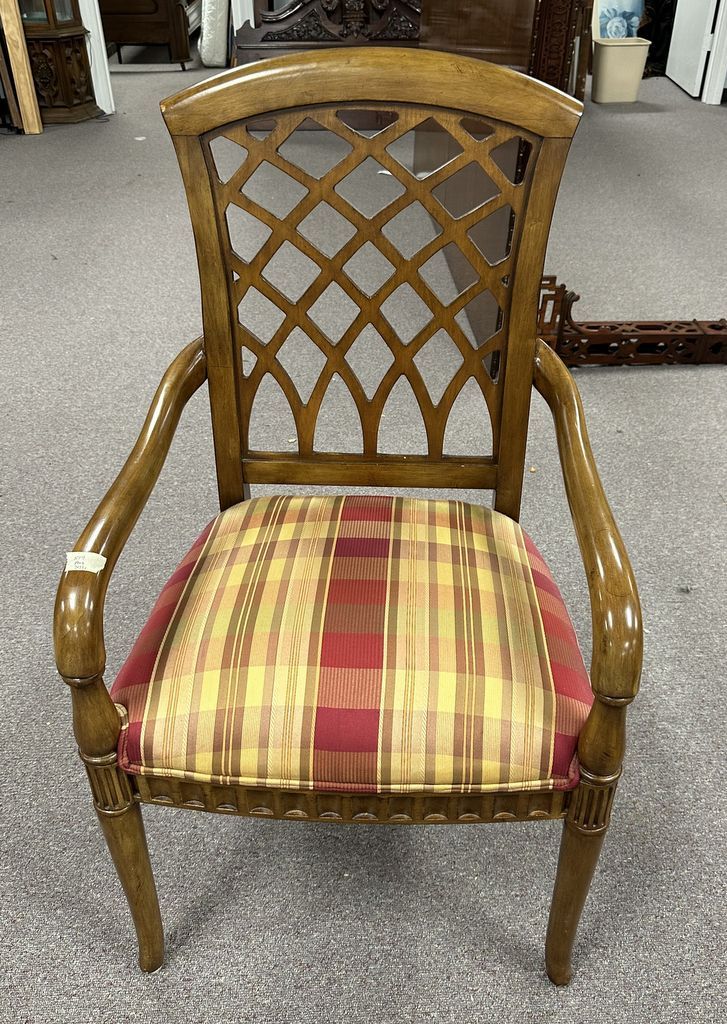 Heather Brook reproduction arm chair, striped. Location Row 1 Heather Brook reproduction arm chair, striped. Location Row 1