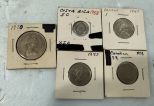 611 Costa Rica 5 Cent, Panama 1947, Canadian 5 Cent, 1973 Canadian 25 Cent and 1970 Bermuda 50 Cent